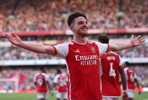 足球赛程-赖斯是第二位欧冠对阵皇马破门的阿森纳球员,首位是亨利