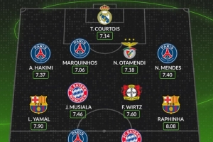 Whoscored评本赛季欧冠最佳阵:登贝莱领衔、亚马尔、拉菲在列