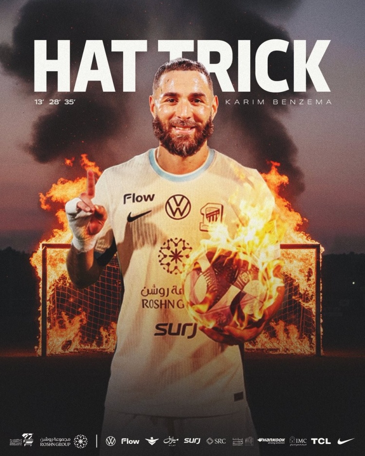 英超直播-本泽马在沙特超联赛已经4次戴帽,创造吉达联合队史纪录