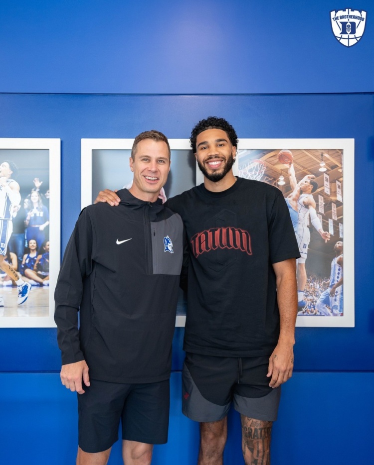 8月30日,杜克大学通过官方社交媒体发布动态,分享了多位篮球界知名人士返校训练的温馨场景。前主帅老K教练与校友塔图姆、班凯罗,以及今年新秀弗拉格、马卢阿奇等人齐聚校园,配文称:“永恒的兄弟情谊。”